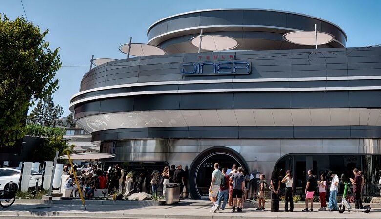 كان ماسك قد أعلن عن مفهوم “مطعم قديم الطراز مع خدمة على الزلاجات وموسيقى الروك” في عام 2018. ومنذ افتتاحه يوم الاثنين، شهد المطعم ذو الطابع المستقبلي القديم طوابير طويلة من العملاء الذين يتم تقديمهم برغر في علب مصممة على شكل “سايبرترك”. وقد نشر أحد العملاء على يوتيوب أنه انتظر 11 ساعة لافتتاح المطعم.